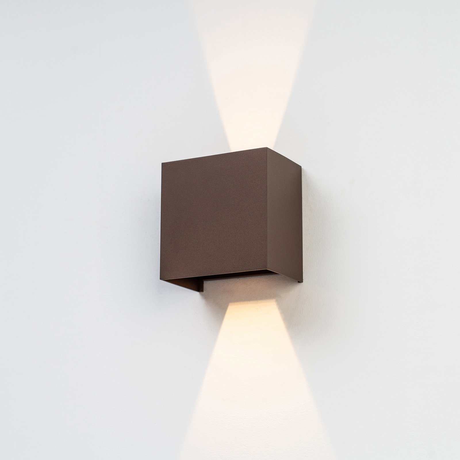 Applique LED métal rouille. Diffuse une lumière indirecte vers le haut et vers le bas. Equipée d’ailettes permettant de régler l’angle des faisceaux. Convient pour la mise en valeur de vos espaces extérieurs comme intérieurs.