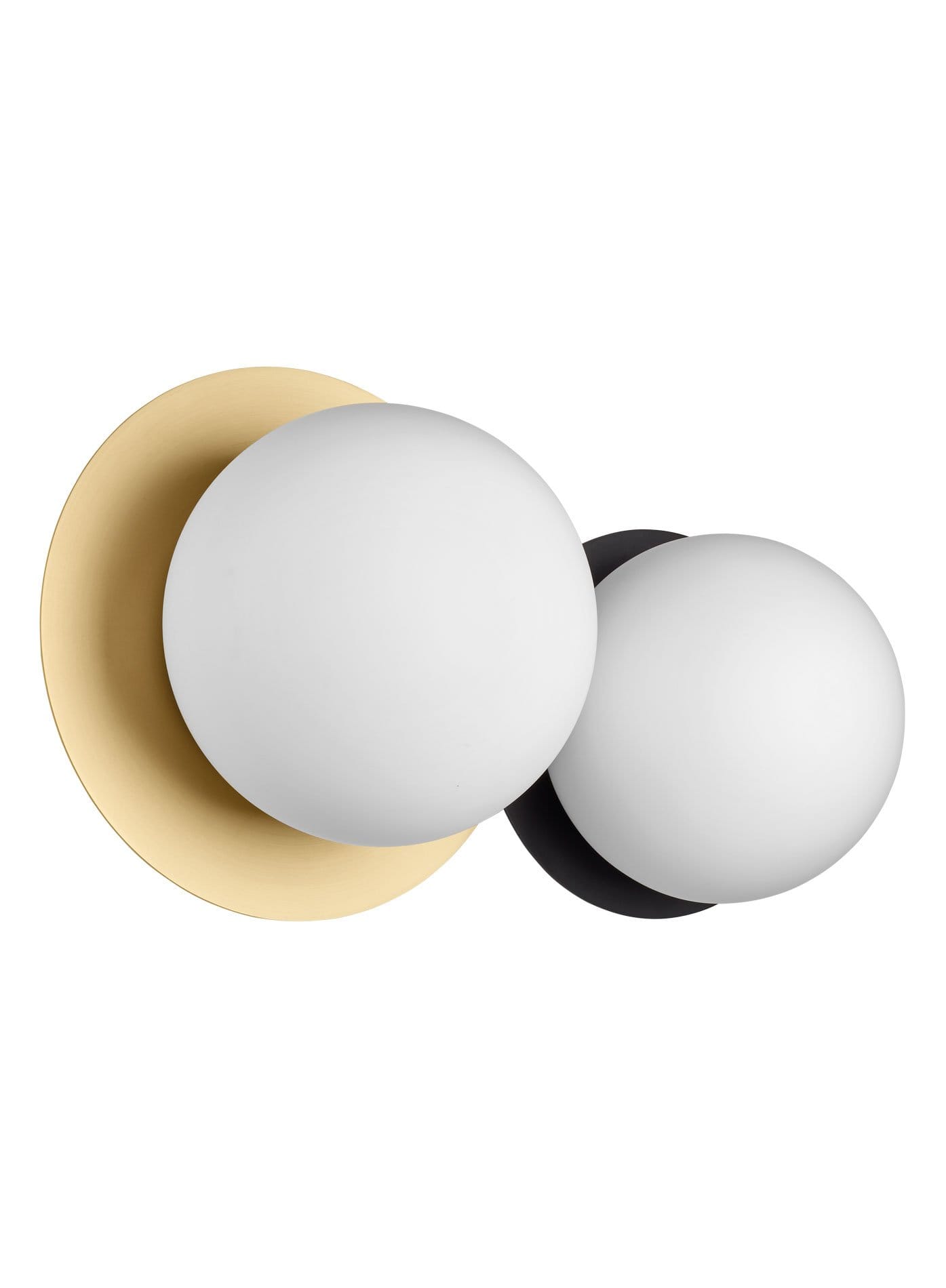 Applique/plafonnier métal doré et noir verre opale. Indice de protection IP44 et double isolation CL2, peut être installé en salle de bain, mais grâce à son design intemporel, dans bien d’autres pièces comme l’entrée et le couloir ou même la chambre et le séjour.