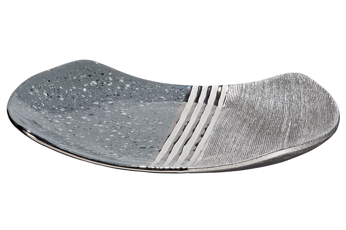 Coupe céramique grise, argentée et chrome, en vide poche ou en simple objet de décoration.