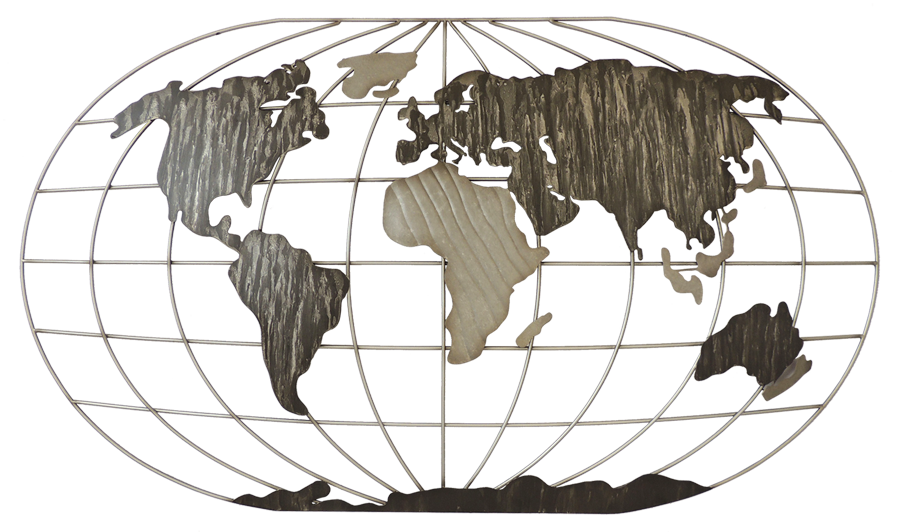 Décoration murale métal planisphère gris clair et foncé