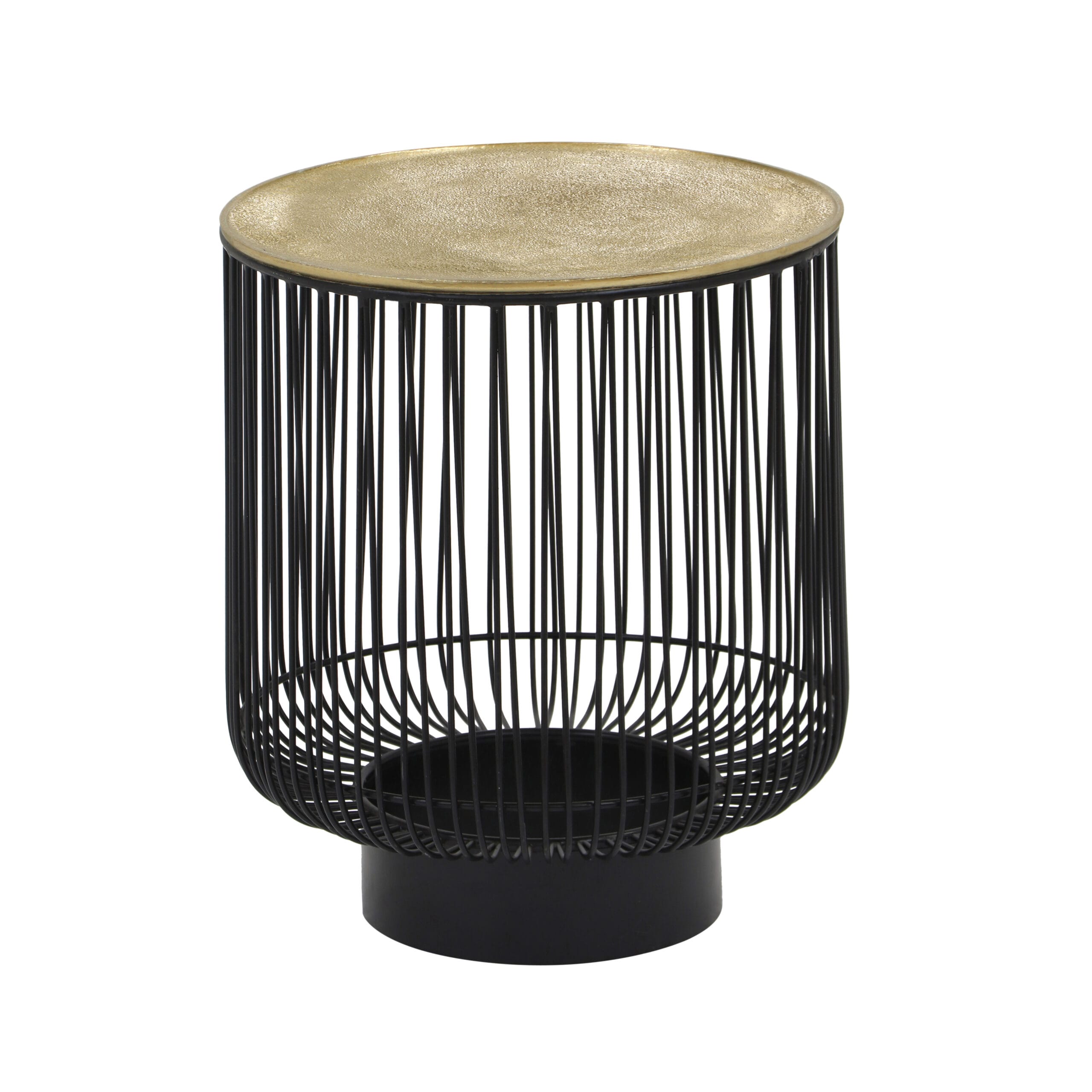 Guéridon d’appoint en métal noir avec plateau en aluminium doré vieilli. A installer dans votre salon ou même en table de chevet dans votre chambre.