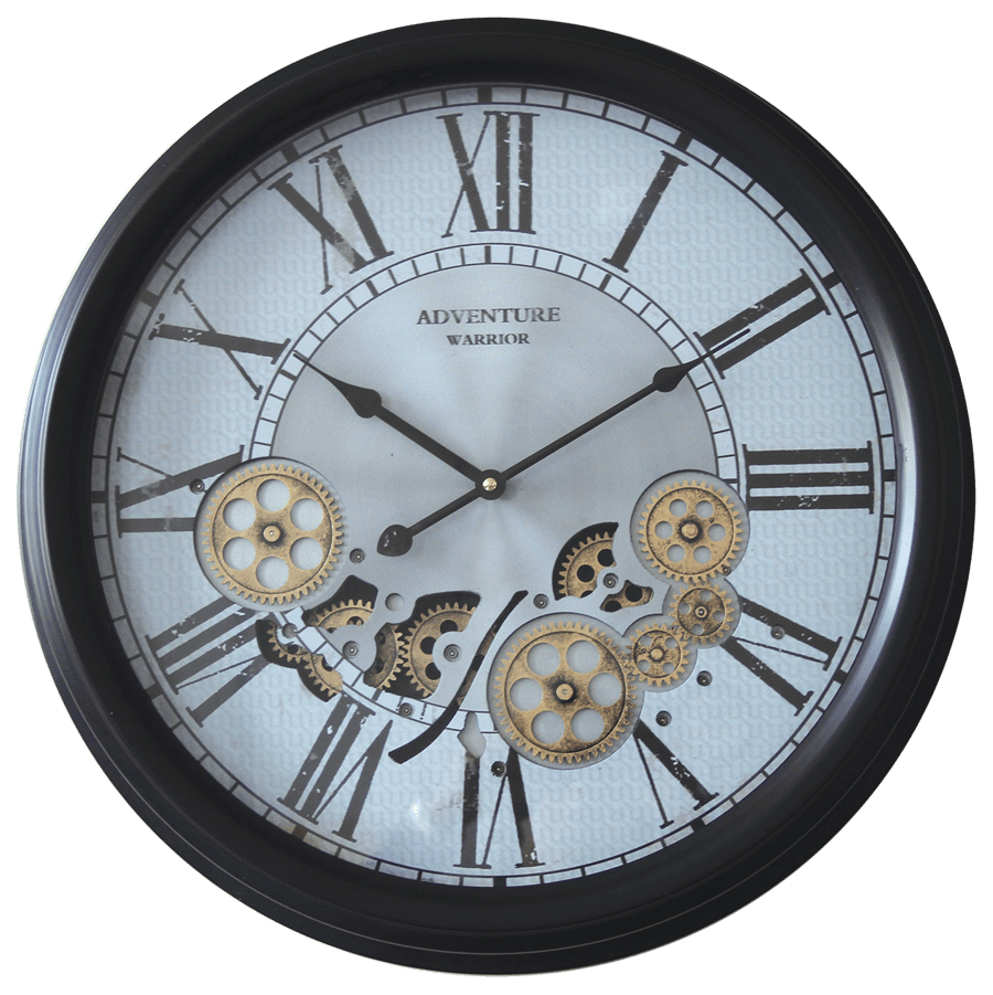 Horloge à engrenages animés chiffres romains noir doré