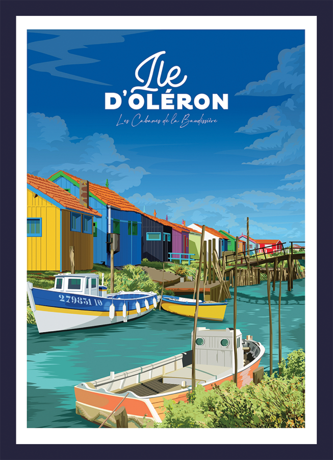Image Ile d’Oleron cadre noir, existe en blanc ou bois naturel et en 50X70 cm