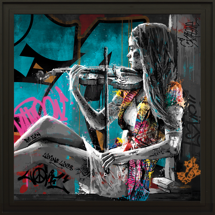 Image encadrée la violoniste, Romaric artiste graphiste en street et pop art