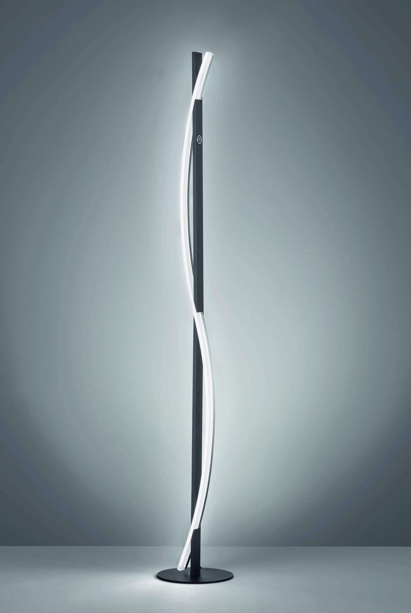 Lampadaire LED en métal noir aux formes courbes et élégantes. La puissance de sa LED vous offre un éclairage efficace. Un interrupteur tactile sur le fût vous permet de régler l’intensité de la lumière.