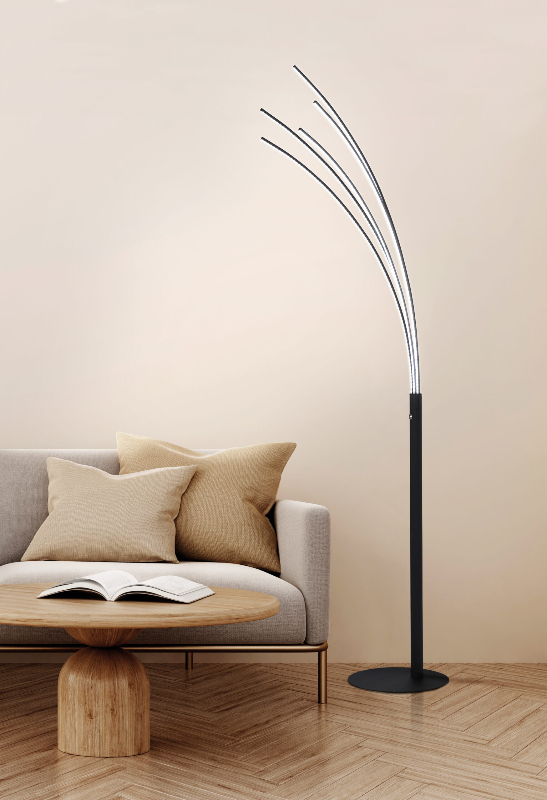Lampadaire LED en métal noir aux formes harmonieuses et élégantes. La puissance de sa LED vous offrira un éclairage efficace et agréable. Un interrupteur tactile sur le fût vous permet de régler l’intensité et la couleur de la lumière du blanc chaud au blanc froid.