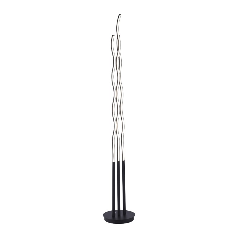 Lampadaire LED métal noir et diffuseur acrylique opale, élégant avec ses formes en vagues. Offre un éclairage diffu et efficace