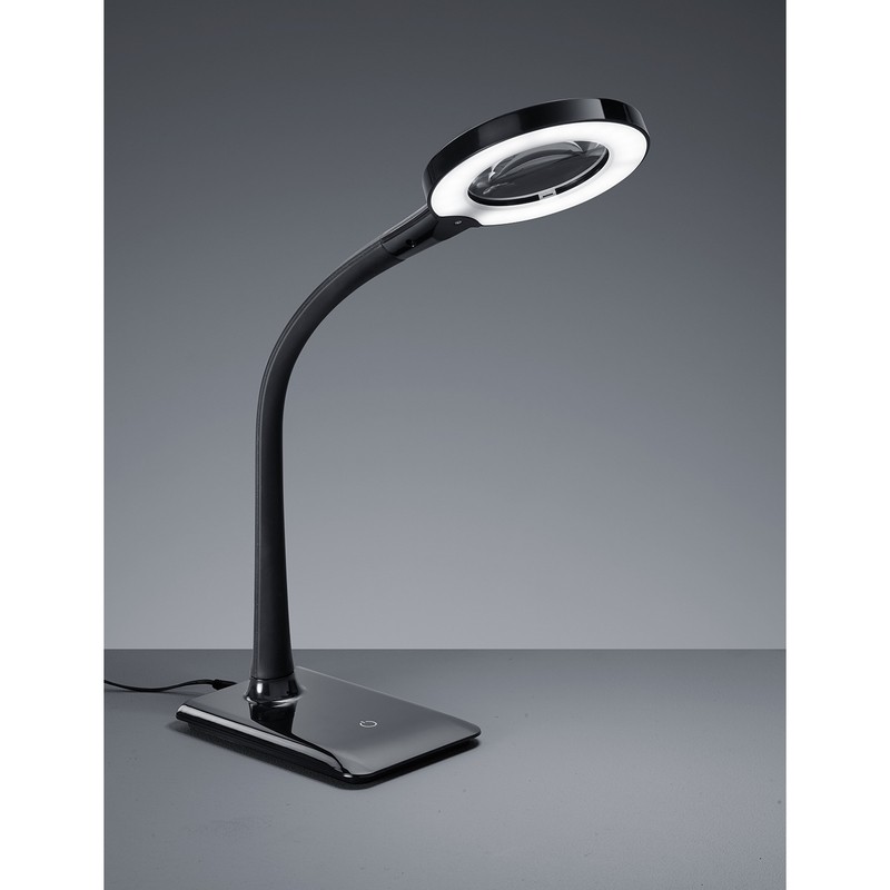 Lampe de bureau led à poser avec bras flexible, éclairage à quatre positions puissant et économique, équipée d’une loupe.
