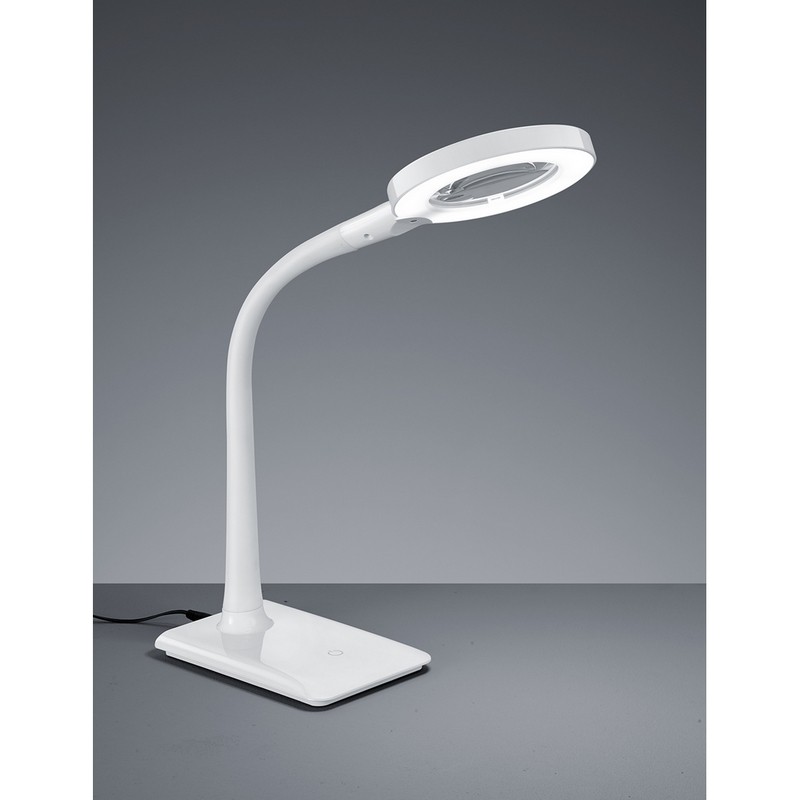 Lampe de bureau led à poser avec bras flexible, éclairage à quatre positions puissant et économique, équipée d’une loupe.