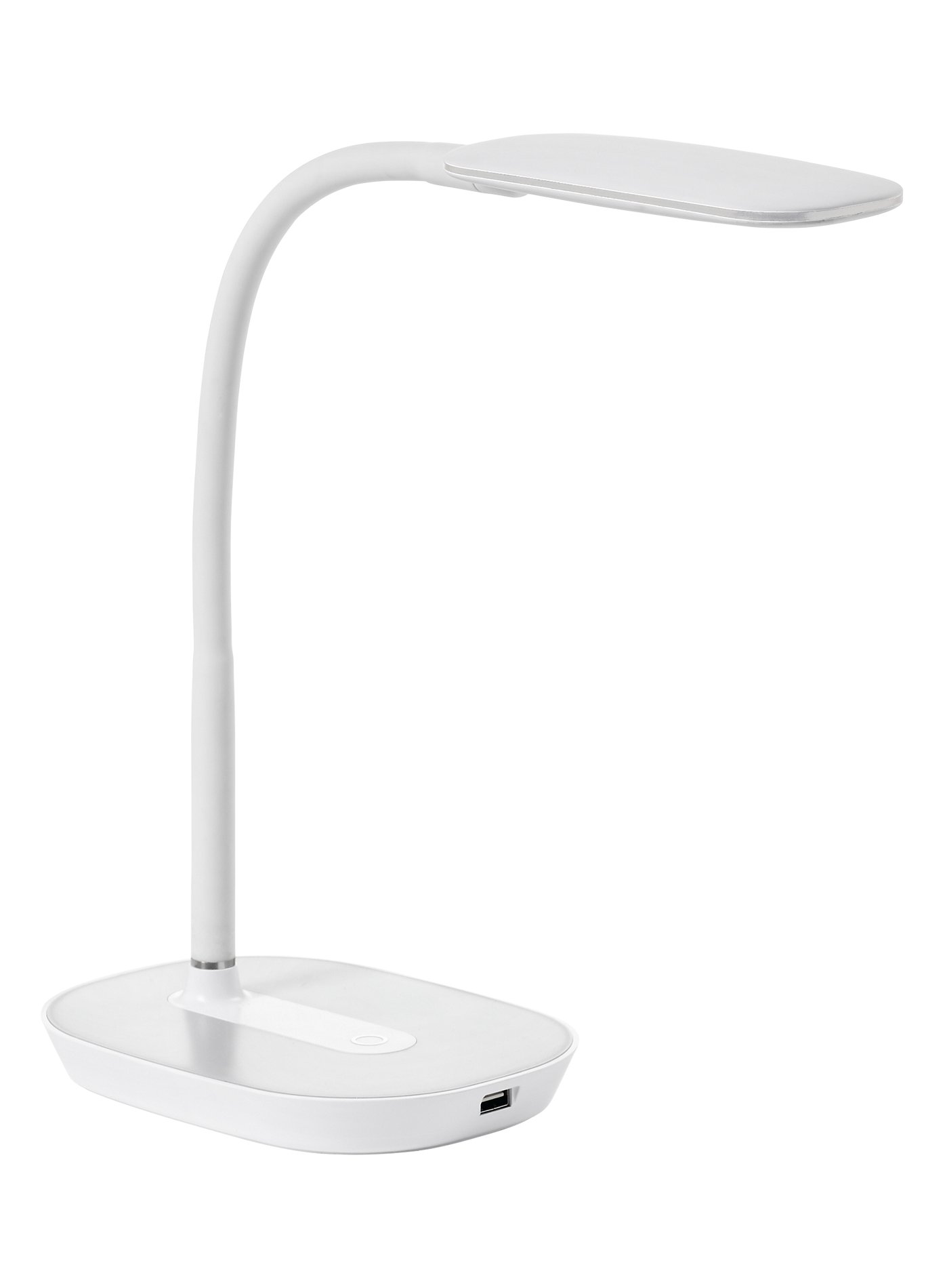 Lampe de bureau LED grise et blanche flexible, équipée d’un interrupteur 3 positions et d’un port USB pour recharger votre téléphone. Parfait pour travailler sur votre bureau ou comme lampe de chevet.