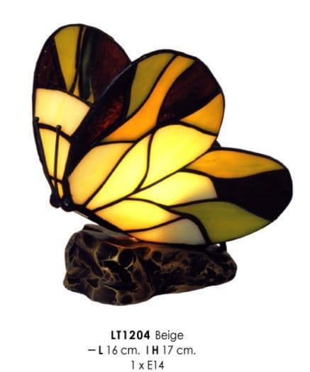 Cette lampe papillon TIFFANY de style retro avec son abat-jour composé de pièces en pâte de verre montées à la manière des vitraux, diffuse lumière douce et chaleureuse.