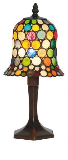Cette lampe TIFFANY de style retro avec son abat-jour composé de pièces en pâte de verre montées à la manière des vitraux comme une mosaïque, diffuse lumière douce et chaleureuse.