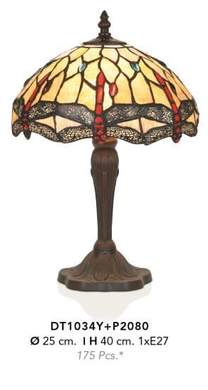 Cette lampe TIFFANY de style retro au décor avec son abat-jour composé de pièces en pâte de verre montées à la manière des vitraux orné de libellules et de perles en verre, diffuse lumière douce et chaleureuse.