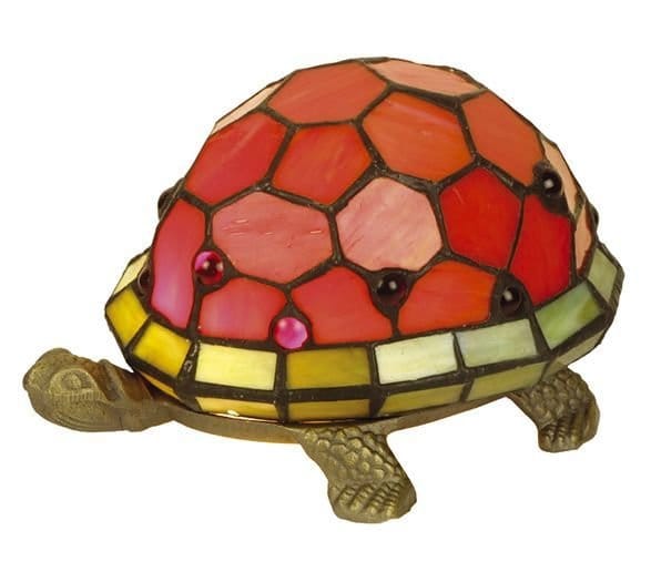 Cette lampe tortue TIFFANY de style retro avec son abat-jour composé de pièces en pâte de verre montées à la manière des vitraux, diffuse lumière douce et chaleureuse.