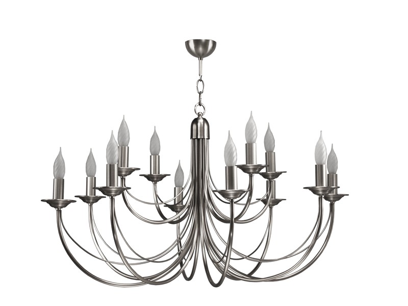 Lustre CHATELET 12 lumières en laiton massif nickel, de fabrication française, un classique très épuré.