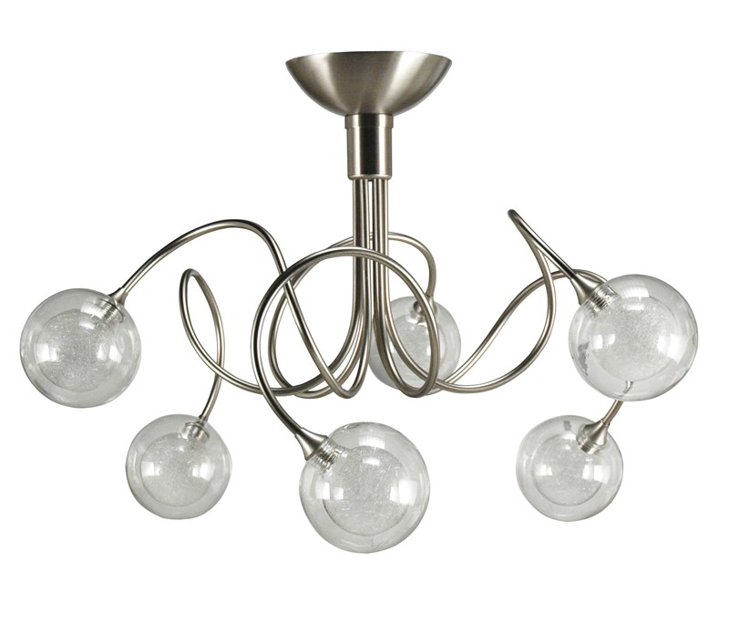 Lustre MUMBAI 6 lumières en laiton massif nickel, de fabrication française, un mouvement original pour une belle répartition de la lumière.