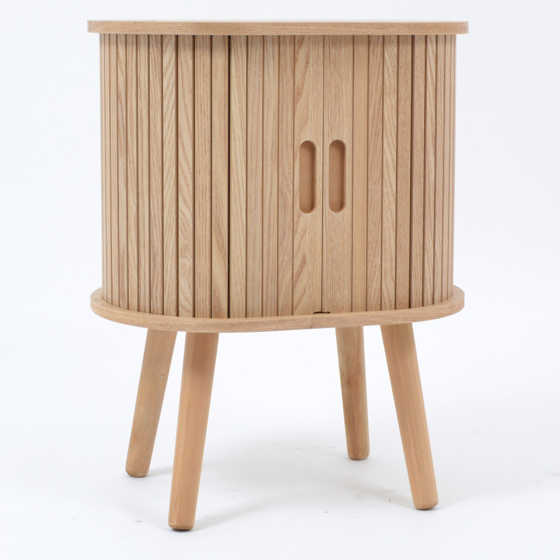 Meuble de chevet en MDF, placage de Frêne et bois de pin. Idéal pour ajouter une touche de sophistication scandinave et un rangement discret à votre intérieur. Ses portes coulissantes et ses pieds fuselés en font une pièce à la fois fonctionnelle et esthétique.