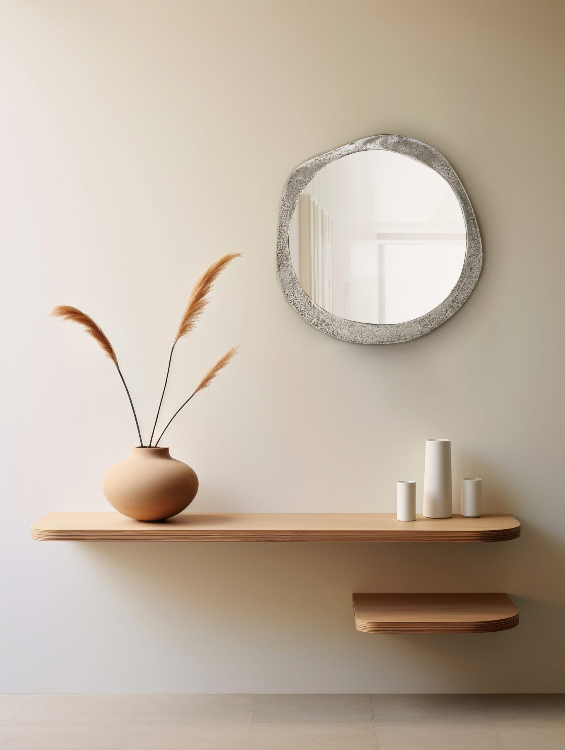 Miroir décoratif en métal argent vieilli 57×56 cm