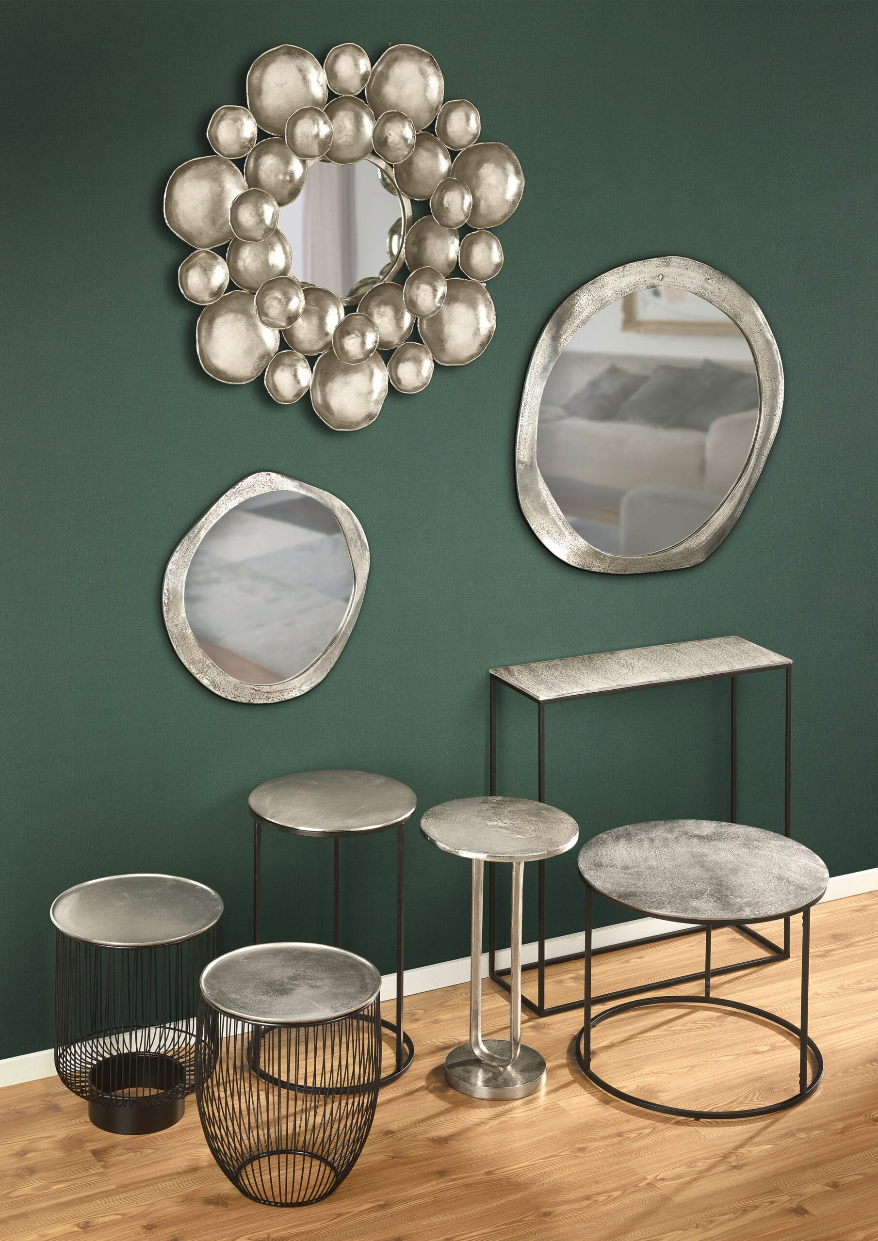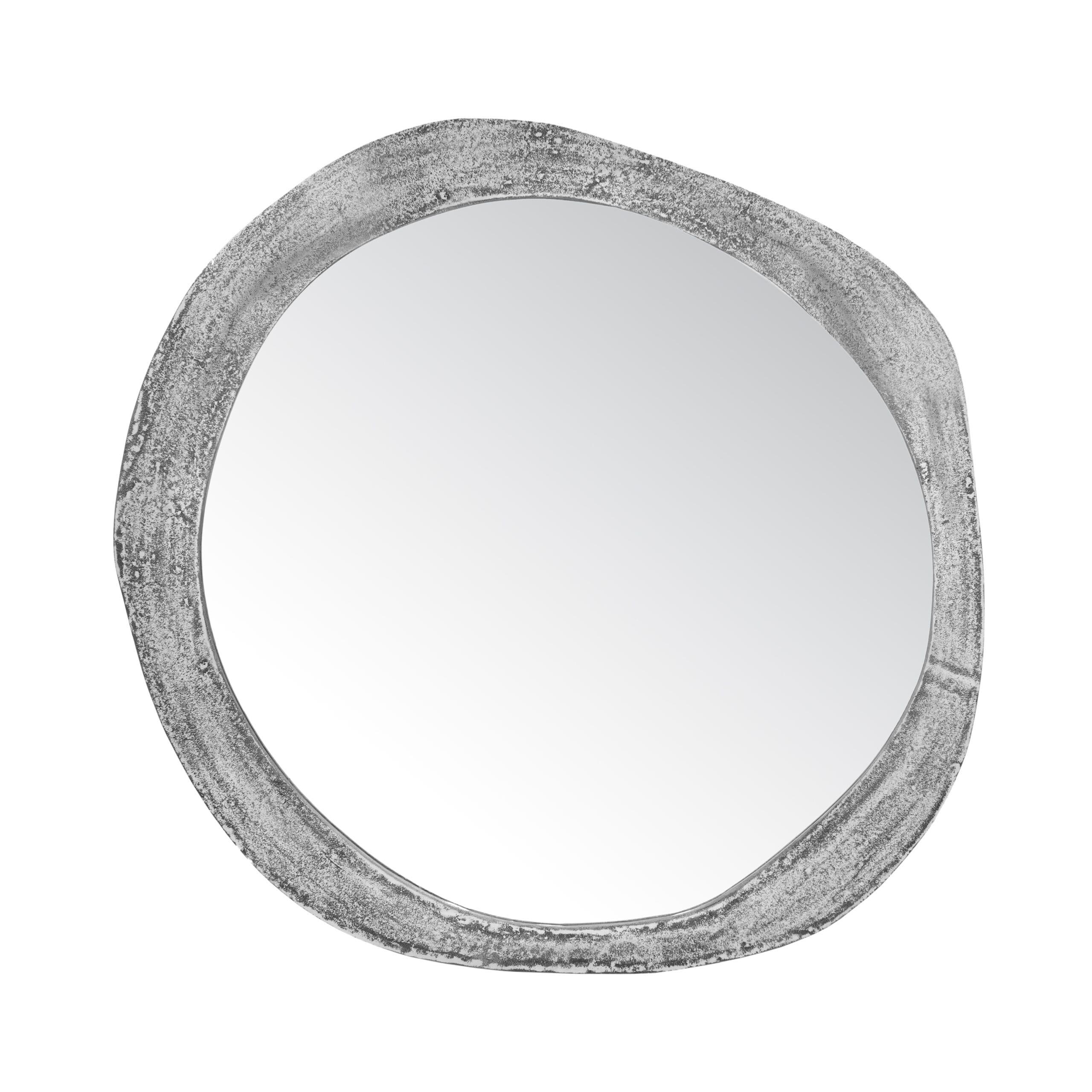 Miroir décoratif en métal finition argent vieilli de dimensions 88×90 cm. D’un design original, idéal pour sublimer une décoration vintage ou contemporaine.