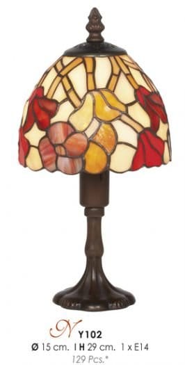 Cette lampe TIFFANY de style retro avec son abat-jour composé de pièces en pâte de verre montées à la manière des vitraux au décor floral, diffuse lumière douce et chaleureuse.