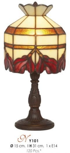 Cette lampe TIFFANY de style retro avec son abat-jour composé de pièces en pâte de verre montées à la manière des vitraux, diffuse lumière douce et chaleureuse.