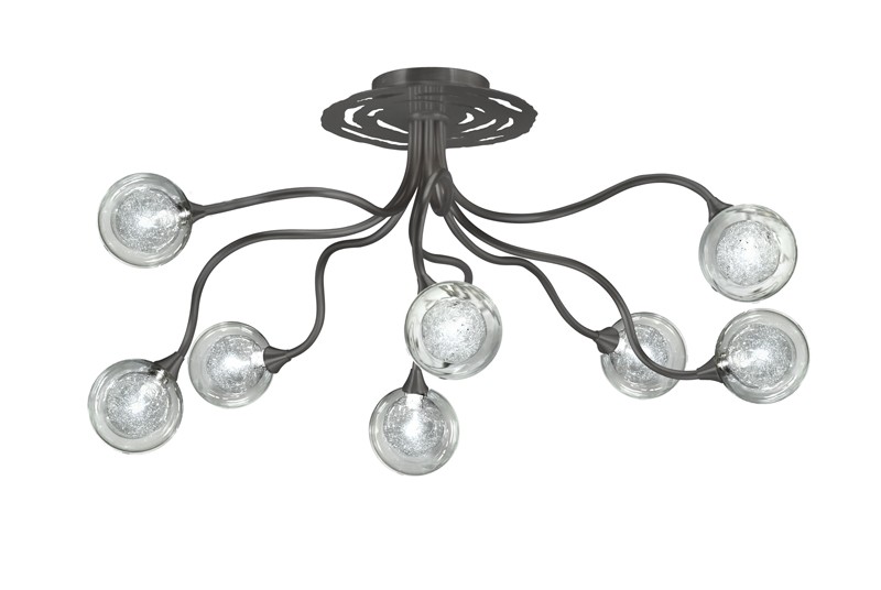 Plafonnier HEVEA 8 lumières en laiton massif graphite, de fabrication française, un beau volume tout en restant près du plafond.