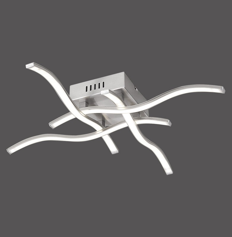 Plafonnier LED métal nickel et diffuseur acrylique opale, élégant avec ses formes en vagues. Offre un éclairage diffu et efficace