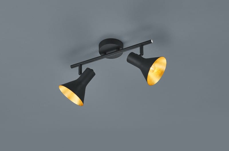 Rampe 2 spots métal noir, son décor intérieur feuille Or produit une lumière chaude. Une touche déco pour une ambiance industrielle ou contemporaine