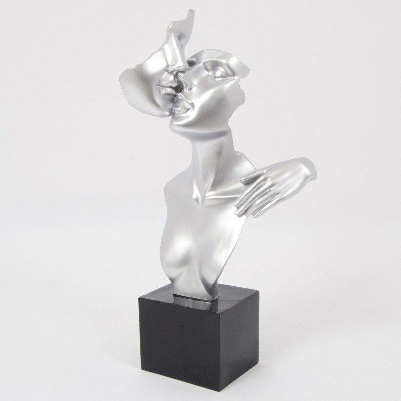 Cette sculpture capte l’essence d’un baiser passionné avec ses deux visages abstraits en finition argentée sur un socle noir. C’est une pièce d’art moderne et émouvante, parfaite pour ajouter une touche de romantisme et de sophistication à votre décoration.