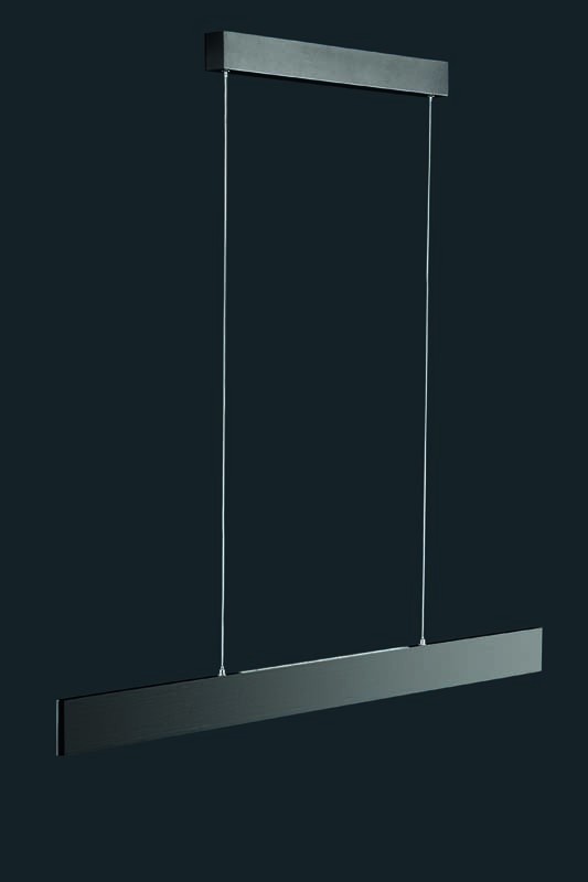 Suspension LED JUSTUS noir brossé, éclairage variable direct et indirect à installer au dessus d’une table à manger, un plan de travail, un bar ou même un ilot central