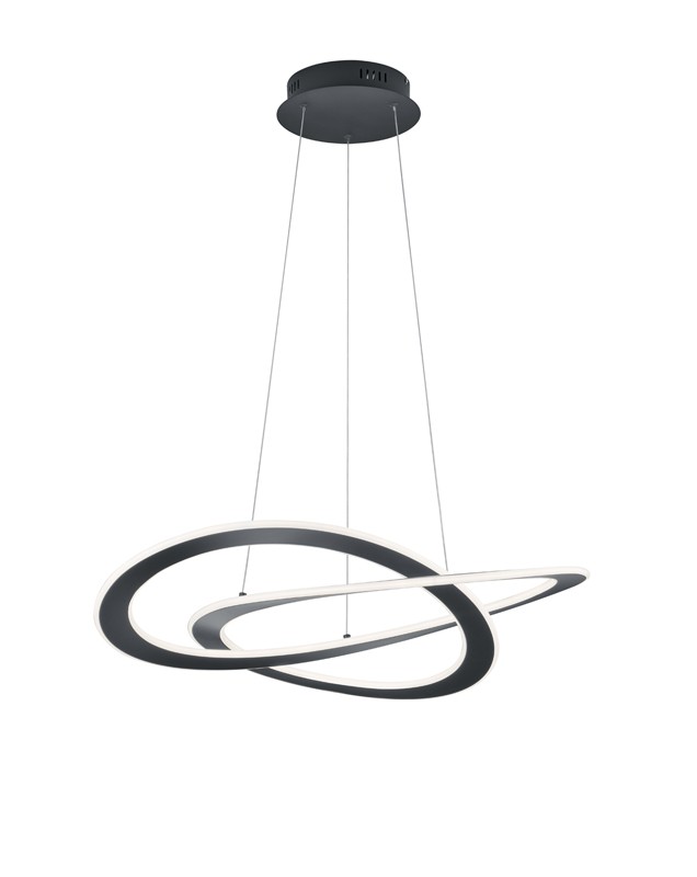 Suspension LED en métal anthracite et diffuseur acrylique opale sa forme de boucle en infini permet un éclairage très puissant à 360°. Réglable sur 3 niveaux d’éclairages