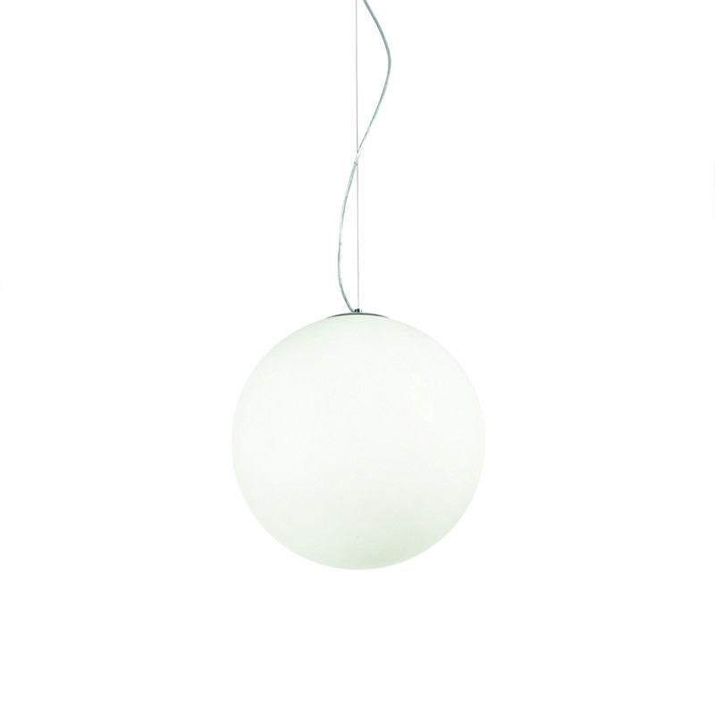 Suspension MAPA SP1 D40 verre opale et métal nickel satiné. Une boule, rien de plus simple. Mais c’est tellement éfficace ! A installer partout, en fonction de la dimension de la pièce