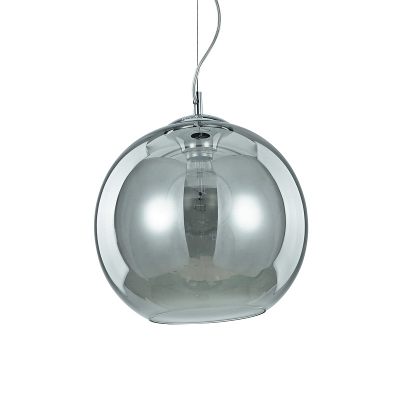 Suspension NEMO SP1 en verre fumé et métal chromé, un sphére avec une belle ouverture pour une meilleure diffusion de la lumière. Dans une cuisine bien sur et pourquoi pas une chambre