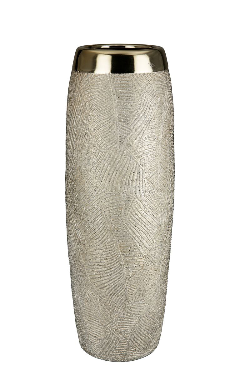 Vase en céramique au décor comme un feuillage gravé de couleur champagne réhaussé d’émail doré.